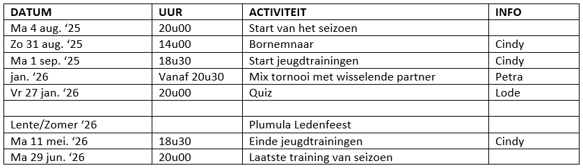 Onze badmintonclub organiseert gedurende het jaar heel wat activiteiten voor haar leden. Hieronder vind je een overzicht.